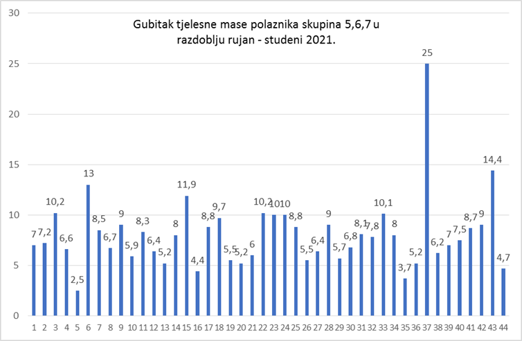 Zanimljivo je da je ovo prva skupina u kojoj do sada najveći gubitak kilograma iskazuje jedan muškarac (do sada su to uvijek bile žene) i to s dojmljivih 25 kg za svega tri mjeseca.