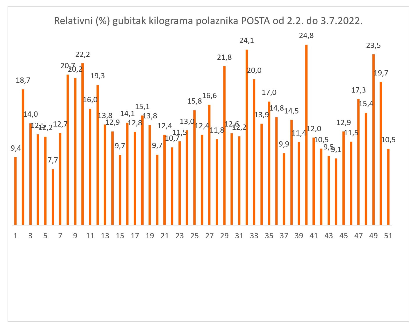 Prošli je tečaj (Program traje 5 mjeseci) završio 51 polaznik smršavjevši ukupno 804 kg, tj. prosječno 15,8 kg, odnosno 14,7 % početne težine. Osobito je važan i dojmljiv podatak da su svi polaznici smršavjeli više od 5 %, a više od 10 % početne težine smršavjelo je 86,3 % polaznika što POST pretvara u daleko najučinkovitiji svjetski program mršavljenja. Naime, najpoznatiji svjetski programi mršavljenja imaju znatno manji postotak osoba koje smršave 10 ili više posto svoje težine. Tako tijekom 6 mjeseci (POST traje pet mjeseci) u programu Rosemary Conley 10 % svoje težine smršavi 46 % polaznika, u Atkins diet 45 %, Weight Watchers 36 % i u programu Slim-Fast 21 % polaznika.